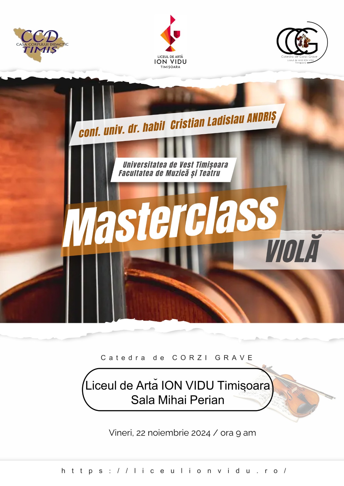 Masterclass de violă cu conf. univ. dr. habil Cristian Ladislau Andriș de la Facultatea de Muzică și Teatru din cadrul Universității de Vest Timișoara